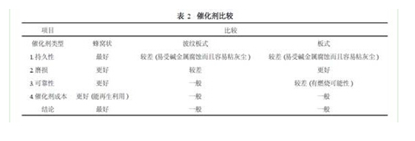 2)同波紋式、板式催化劑相比,蜂窩狀催化劑有如下優(yōu)點,如表2所示。